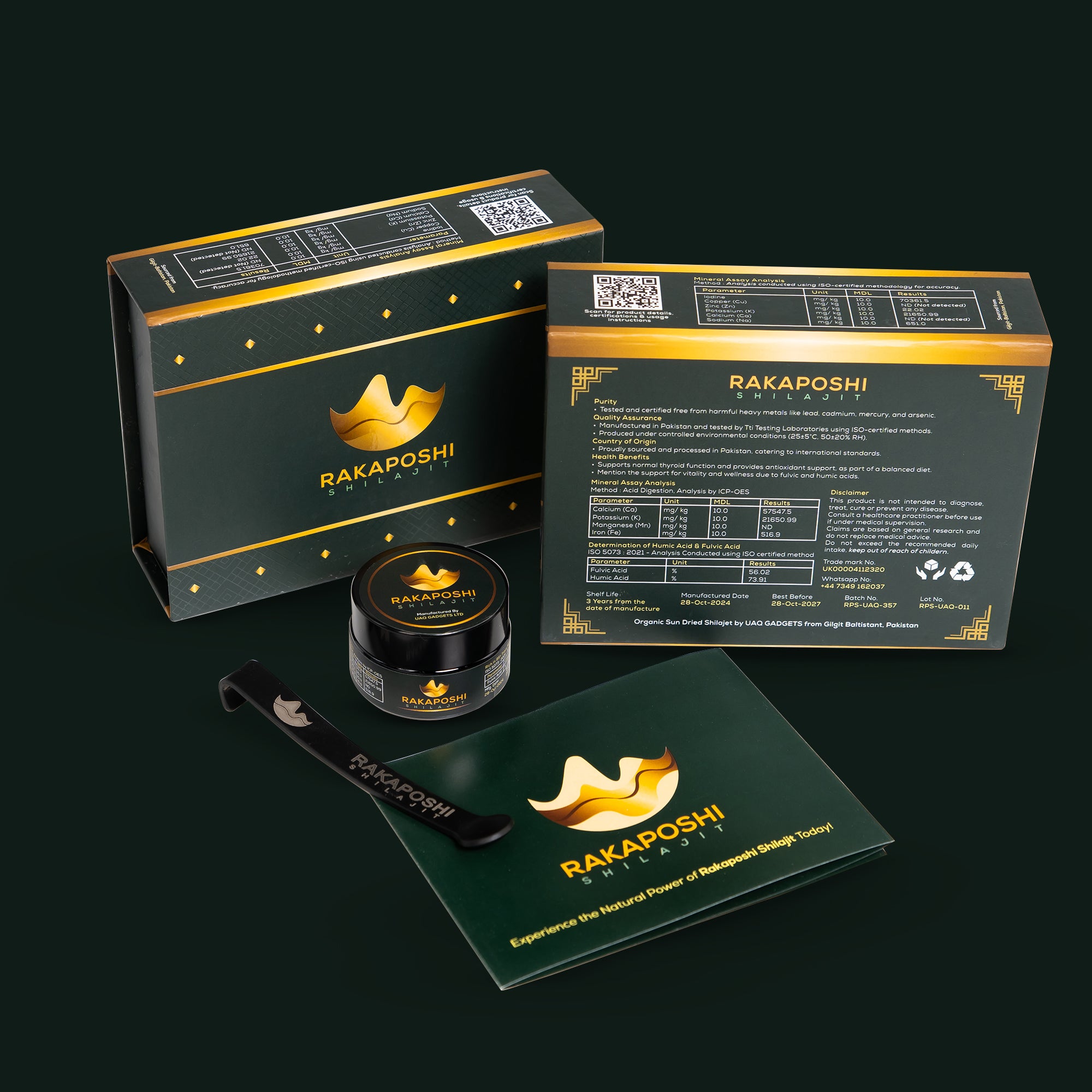 Harvested from the pristine peaks of the Rakaposhi mountain range, our shilajit is a rich source of minerals and fulvic acid. Known for its rejuvenating properties, Rakaposhi Shilajit enhances vitality and overall well-being